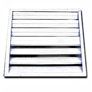 Injection molded frame with smooth aluminum louvers that automatically open when fan turns on, and close when fan turns off to keep out air, insects, and dust. Interior Use.